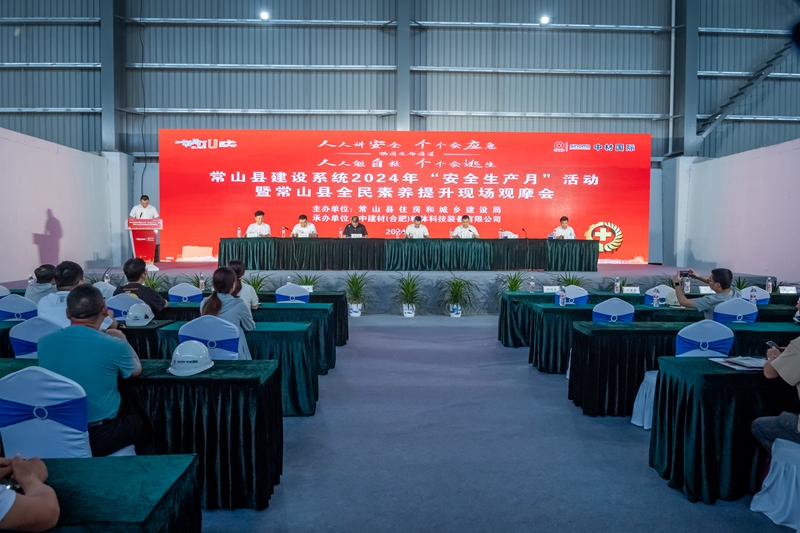 6月24日,由常山縣住建局主辦、中建材(合肥)粉體科技裝備有限公司承辦的常山縣建設(shè)系統(tǒng)2024年“安全生產(chǎn)月”活動暨常山縣全民素養(yǎng)提升現(xiàn)場觀摩會在神龍建材項目召開。常山縣住建局局長鄒偉良,中國建材裝備集團(tuán)副總經(jīng)理王虔虔出席會議。常山縣住建局副局長吳紅華、農(nóng)村投資集團(tuán)副總經(jīng)理徐磊、泰安礦產(chǎn)經(jīng)營有限責(zé)任公司總經(jīng)理徐衛(wèi)星,中建材(合肥)粉體科技裝備有限公司董事長王慶、營銷總監(jiān)及項目督導(dǎo)徐從戰(zhàn)等參會。會議由吳紅華主持,常山縣所有建筑企業(yè)負(fù)責(zé)人、在建項目的項目經(jīng)理及總監(jiān)等共計260余人參加。